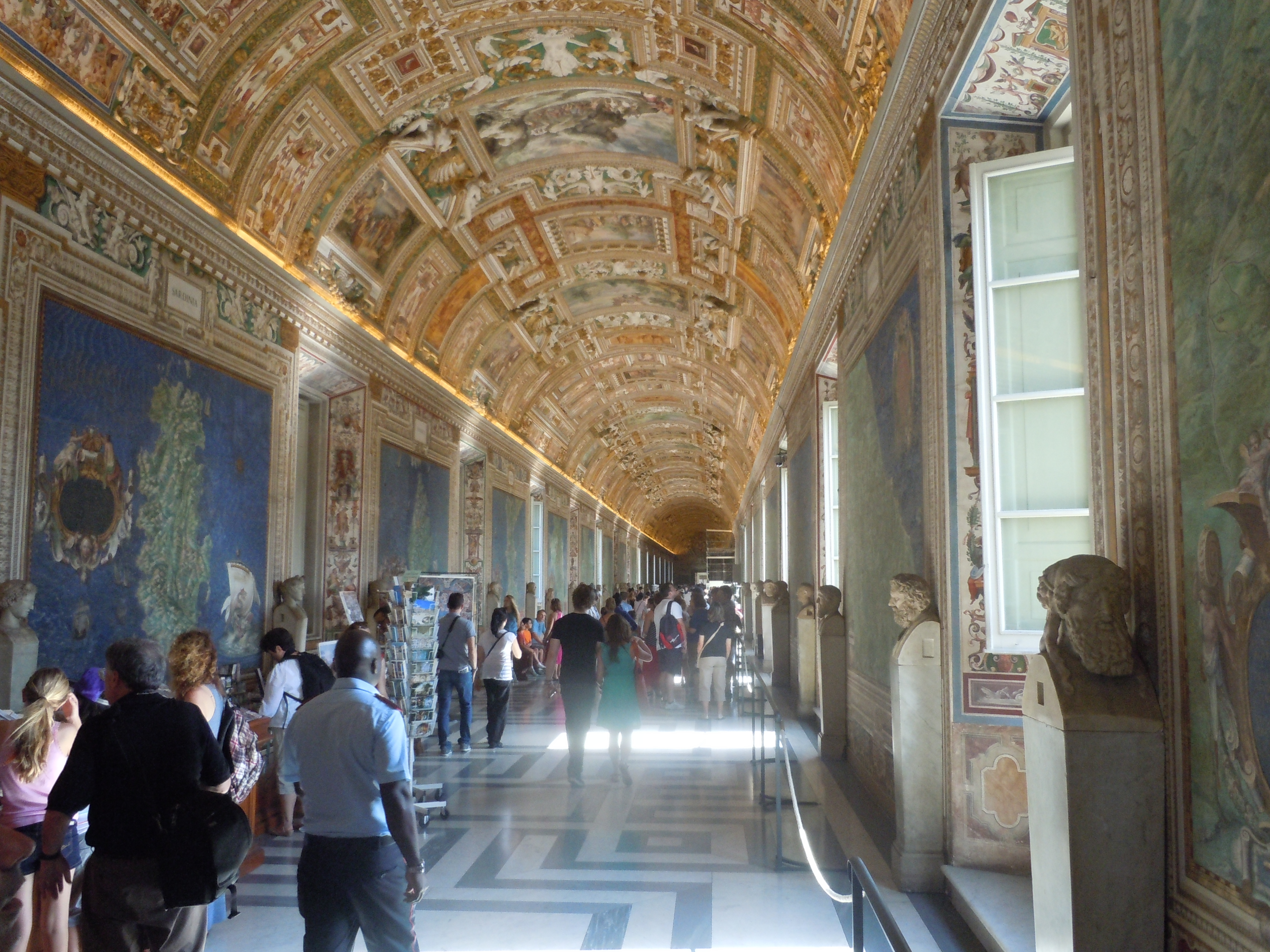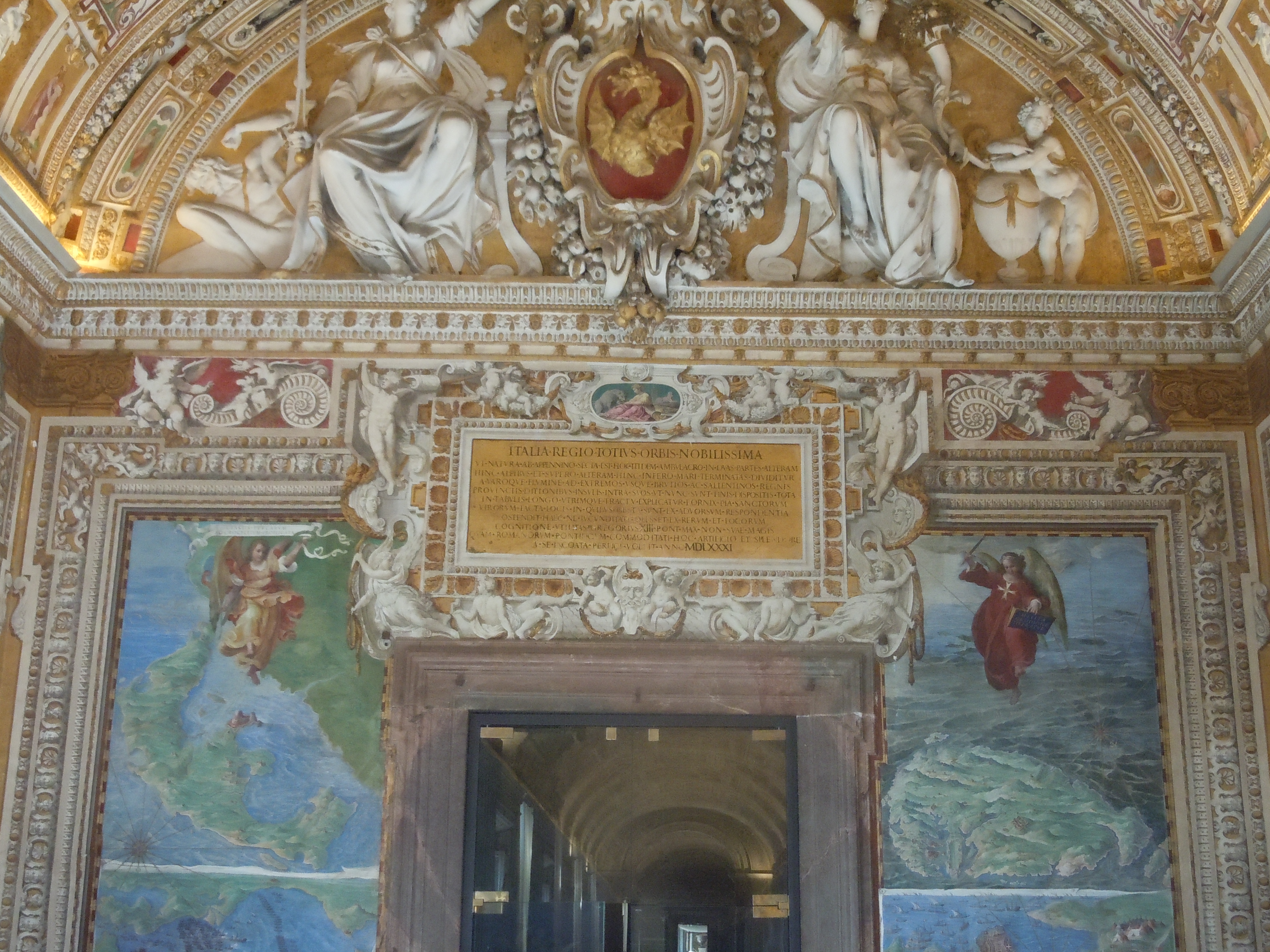 The corridor is placed in quite a particular location in the Vatican itself, overlooked by tourists who view the Gallery with the Vatican museums–they connect the pope’s private quarters and the Vatican itself, just over the Belvedere courtyard, along a corridor that progresses from north to south, and as such constitute a familiar space through which the pontiff not only moved in his daily transit while in Rome, but which he or members of the curia might also allow visiting dignitaries to view.  The cartographical surfaces of the maps are often inscribed with a dizzying array of historical events that viewers find difficult to process, so much as behold with wonder, the use of cartographical forms to celebrate the integrity of a divided region was explicit to its viewers: