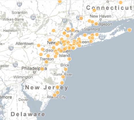 And I go back to the map of New York, using the program to zero in, where the clustering of orange blobs is striking, and leads me back to the Staten Island neighborhood with a calmer mind, trying to balance their stories with the other lives that intersected with the storm:
