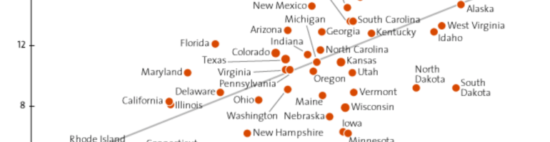 But let’s return to the question of regional variations that these folks have mapped.  Questions of national variation are considerably complex.  If we start by mapping the most guns owned by percentage of the state’s population,