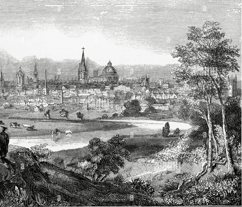 Oxford, England is, of course, a small city that is surrounded by fields, where the cows roam in open pasture about outlying meadows within the ring road, where smells of manure waftinto the city at unpredictable intervals, creating a strong sense of a bond to animal husbandry where the richness of milk is due to the richness of pasture: it is where farmers can ford cattle across the River, Thames, and cows can ford the river’s expanse at the shallow waters of Oxford’s Port Meadow–