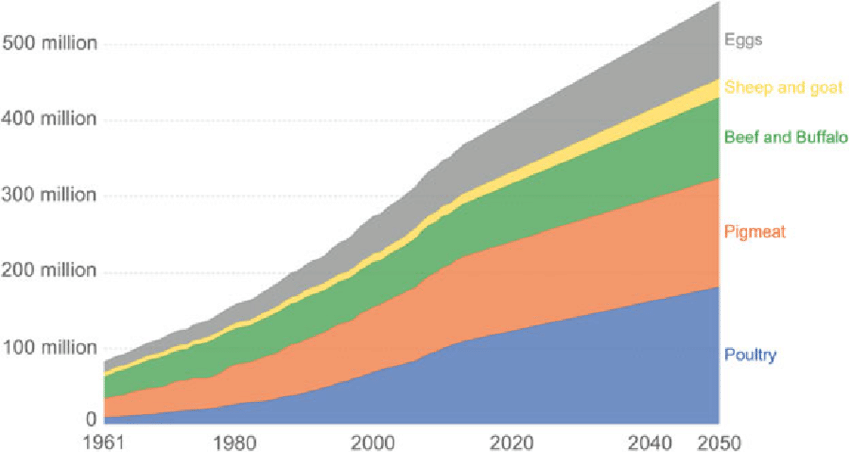 Tonnes of Global Production of Meat based on Projected Population Growth and FAO Data/2012