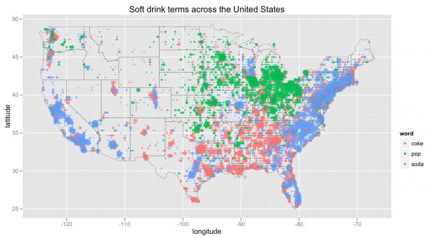 As we look at it, to be sure, we seem to be falling down something of a rabbit-hole, of which maps hang on each side, as for Alice; for the map retains few familiar names. The maps in the Atlas of True Names remind us of the extent to which our understanding of mapped space is determined by the location of names we read on maps’ surfaces, as much as other map signs. Rather than use big data, the map of North America boasts data as small, and apparently as old, as one can get: