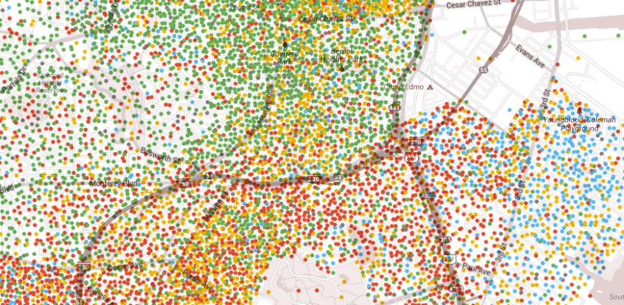 Published July 4, 2013 in Oakland Represented Variously: What We See When We Map Oakland’s Inhabitants | Full size is 924 × 453 pixels