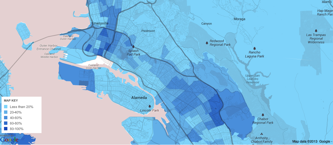 Published July 5, 2013 in Oakland Represented Variously: What We See When We Map Oakland’s Inhabitants | Full size is 1083 × 474 pixels