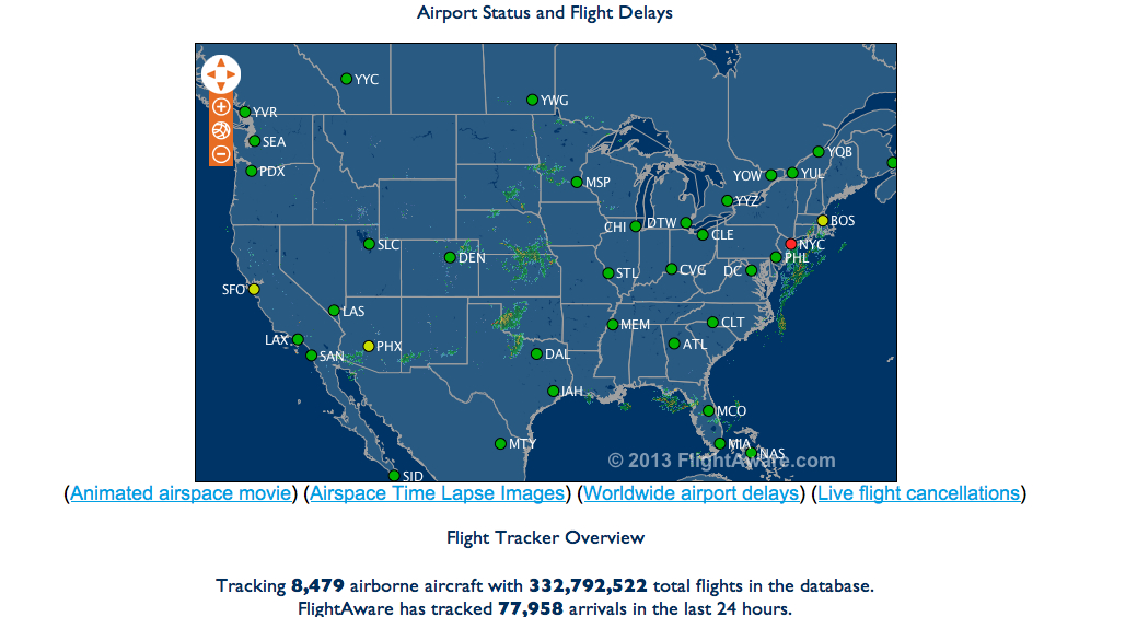 But it provoked a musing. Because of the presence of maps in so many areas of our daily lives, this may be yet another context in wich we’ve come to devalue the map, and lowered expectations for its use at all. Up in the air, the sort of orienting map we’re given is often of little use anyways: this seems to be an assurance that the trip will take a long time, more than even to offer a sense of how long remains in flight. If it used to offer a sort of minor visual diversion (of whose accuracy we were never so sure) or a sort of punishment inflicted for not buying access to the in-flight film, the in-flight monitor has been marginalized as a flight-tracker map by the deluge of mediated maps of flight paths, like the maps at websites like “Flight Aware.” The huge amount of metadata–and vastly superior user-interface–these websites deliver to travelers must have diminished expectations for in-flight monitors, if not bring a certain healthy skepticism about the level of accuracy or trust such maps could promise their readers.
