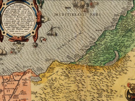 The Dutch map bound the regions by mountains, as biblical precedent described, and did not derive its authority from citation or footnotes, but presented an impressively coherent arrangement of toponymy against the field of a richly defined landscape, combining the density of its coast with a richly populated interior–and provided a model for defining and demarcating fixed regions of the Holy Land. Part of the deeply humanistic function of the Ortelian map, which made it such a monument, was to create a legibility of the Holy Land, instantiating the regions of “Israhel,” “Judeae,” and “Arabic Israel” in the historical map printed in conjunction with his early atlas, embodying that legibility unlike the Christocentric tradition of medieval mapping. The map created a concrete cognitive relation to a region removed from readers’ experience, exploiting its properties for demarcating expanse and noting place.