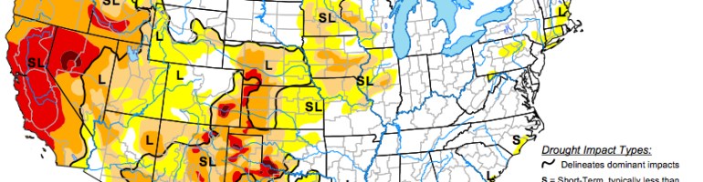 While the image is not able to be easily accessed in animated form, a contrast to a recent reading of drought from this year reveals the striking expanse of extreme and exceptional drought in California’s Central Valley and much of the entire state, to compare the above to two more recent drought maps: