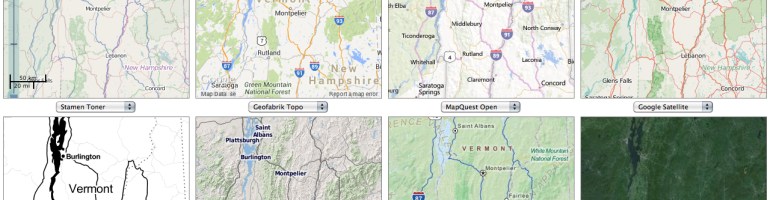 Moving to the greener space of the northeastern United States as a test case, I wanted to examine in some detail the different features of each platform a region that I know well, using the scalable functions of each to zoom into a specific place in the green space of central Vermont.