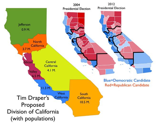 Draper might indeed be seeking to create a similar exercise of cartographical futurology, by improbably linking San Francisco to Silicon Valley, and merging San Diego with Orange County, and then parsing the rest of the current state to most appropriately divide whatever is left over.