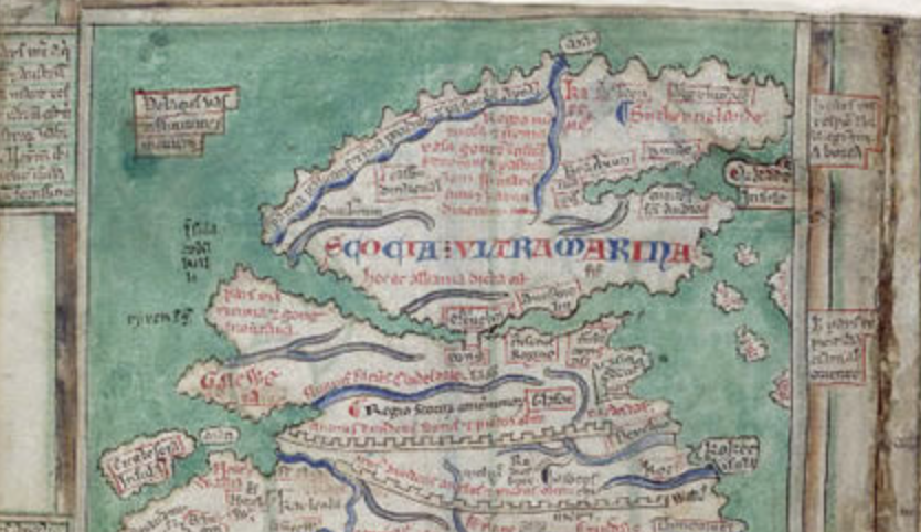 16. For such afterimages reveal the continued unexpected resilience of divides across the topography of political preferences that surprise us by their sudden appearance. The shock they provide reflects how we continue to carve up space in our minds in ways received from cartographical records: to risk a poetical analogy, mapped after-images offer etchings of crises that haunt the landscape, and rhyme with past divides. One example might serve to make the point. The forestalled break of Scotland from the United Kingdom–despite worry about its possibility–carried little sense of the story implied by an earlier after-image or prefigurement, save perhaps Hadrian’s wall or the marine gulf that the thirteenth-century monk Matthew of Paris mapped between England and “Scocia Ultra Marina“: a return to what Scotland was wasn’t clear as an embodiment of the region–for all its untapped potential of oil production–presented little meaning for most ridings’ votes.