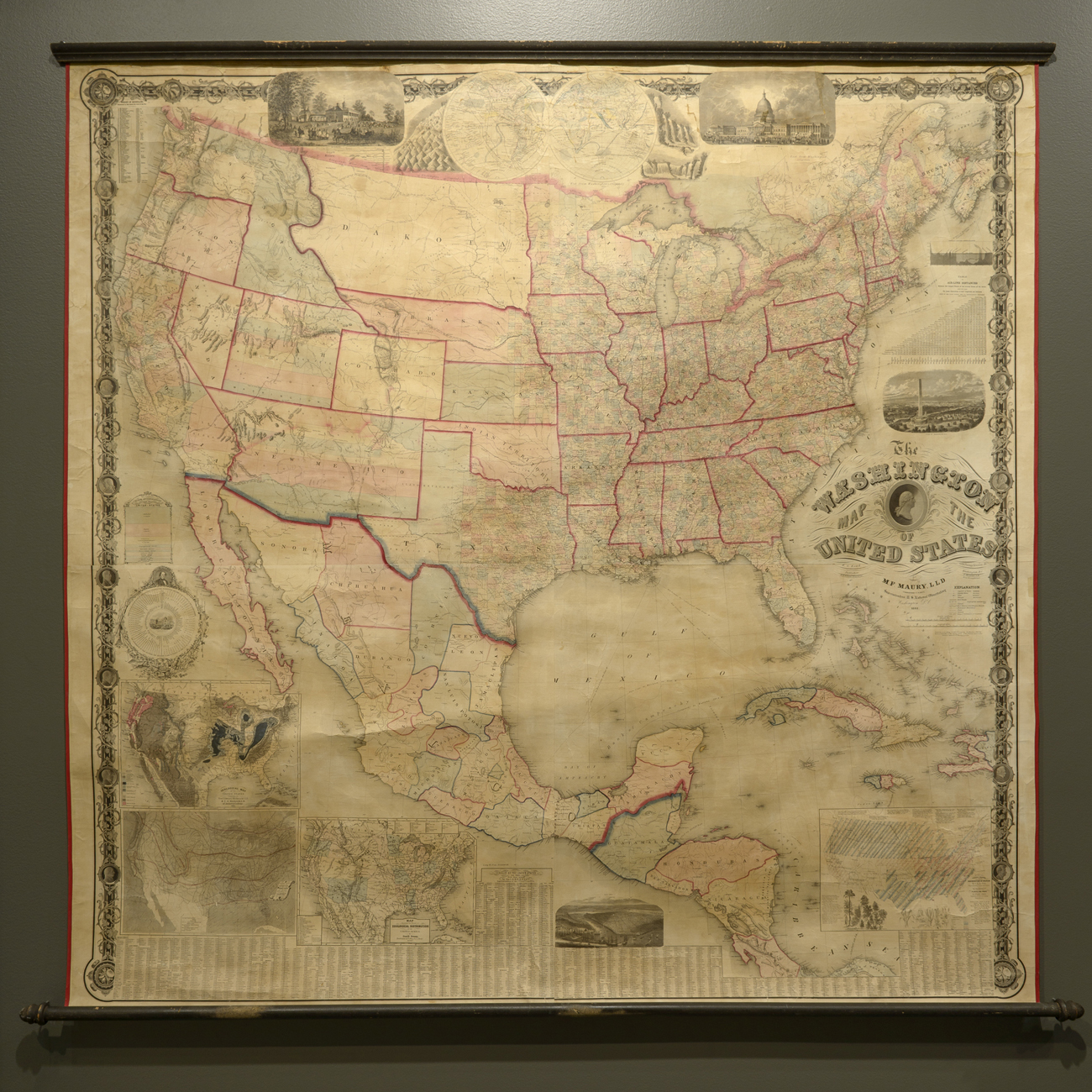 The lithograph was designed as a cogent explanation of a national divide, something of a counterpart to the famous chloropleth lithograph of slave-holding states which Alexander Dallas Bache devised based on the 1860 Census with the recent German immigrant Edwin Hergesheimer (1835-89), or the instructional wall maps like the so-called “Washington Map” Matthew Fontaine Maury mapped from the Census–“States Marked thus * Claim to have seceded from the United States,” the legend of the latter reads, presenting itself as an explicit performance of the continued claims to national sovereignty of the United States.  On the eve of the US Civil War (1861-65), Maury, then Southern Secretary of the US Navy, mapped a Republic in ways that silenced clear fracturing, following a county-by-county cartographical practice but intentionally omitting the geographical divide that would open like a chasm in maps such as Gannett’s in later years.