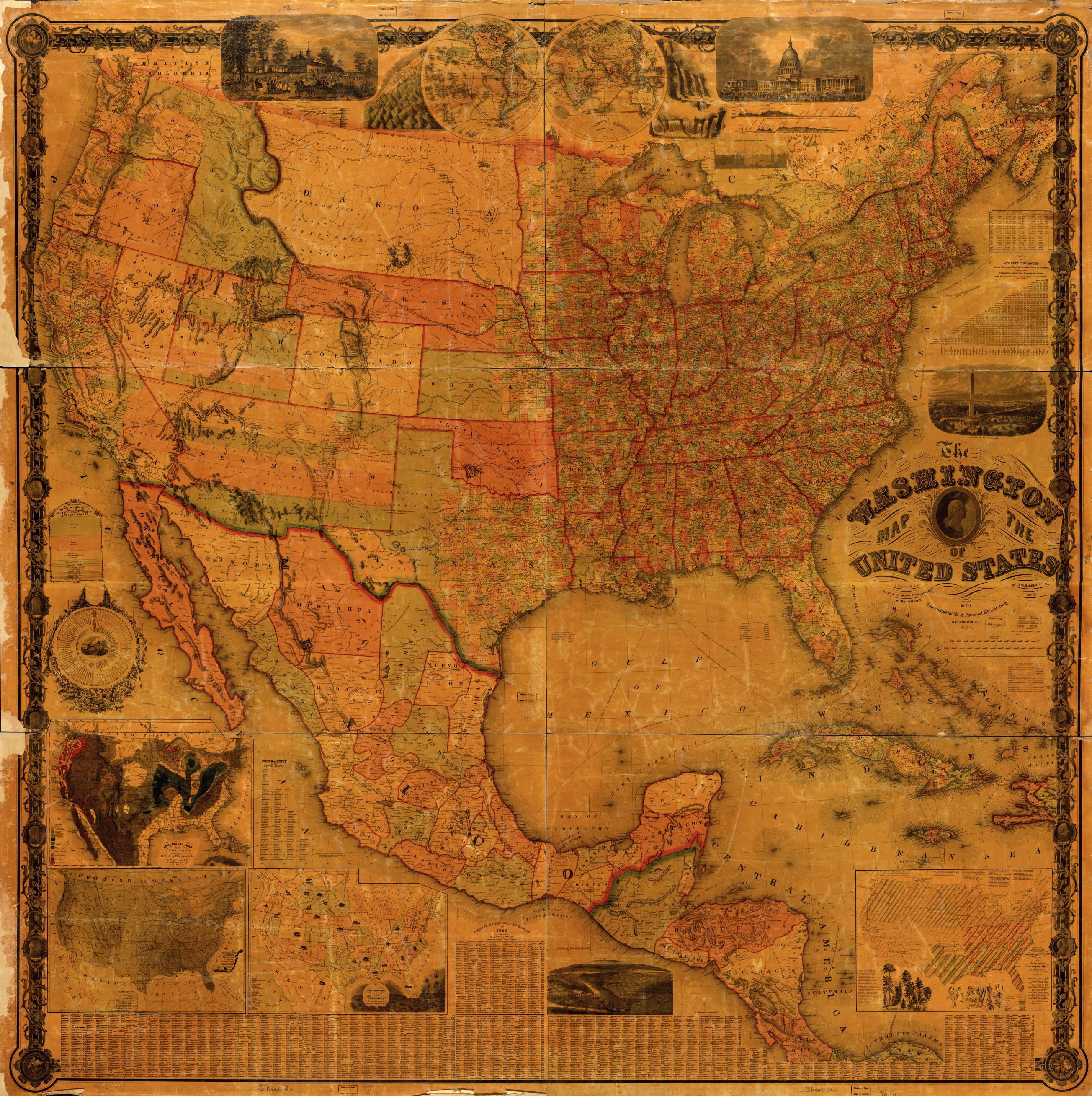 Contemporary national maps with which Gannett’s must be contextualized emphasize the performance of the nation’s symbolic unity unlike many earlier maps, and reveal the possibilities of printing maps for a large audience of readers and students, many of whom would read the map not only as a way to orient themselves to the nation but to naturalize the composition of the continental span of the United States’ continental expanse.