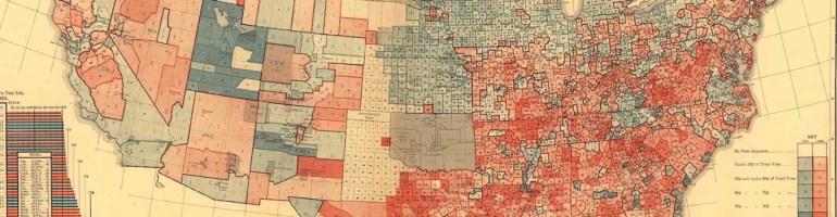 4.  The level of accuracy with which county-by-county data allowed Gannett to parse the polarization of voting patterns across the United States helped visualize lingering divides betwixt northern and southern states.  The divide  told a story of the weight with which the recent historical past sharply divided into two hues, opening local variations for the viewer to explore that have expanded far beyond what Gannet’s original scope may have been:   for to modern eyes, Gannett’s visualization revealed an after-image of resistance to Reconstruction across the reputedly gracious South–one which should not demonize the region, but raise questions about the persistence of economic inequalities and inequalities of citizenship and education that Reconstruction partly sought to remediate.