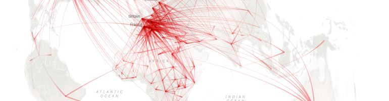 One sacrifices a sense of the local in the arching red lines in the gripping aggregation of global refugees over the past year in “Global Trends,” also pictured the header to this post.  The data vis indeed broached the difficulties of comprehending what has increasingly and ultimately become a global crisis at the end of an age of empire in readily comprehensible terms.  Although the paths of refugees’ flights threatens to muddy the specific travails from which folks are forced to flee in the data visualization, as well as their specific circumstances and travails, it synthesizes and processes the almost unsustainable streams of forced flights from refugee hot spots by foregrounding the actual routes of displacement–while misleadingly suggesting that all refugees found future homes.