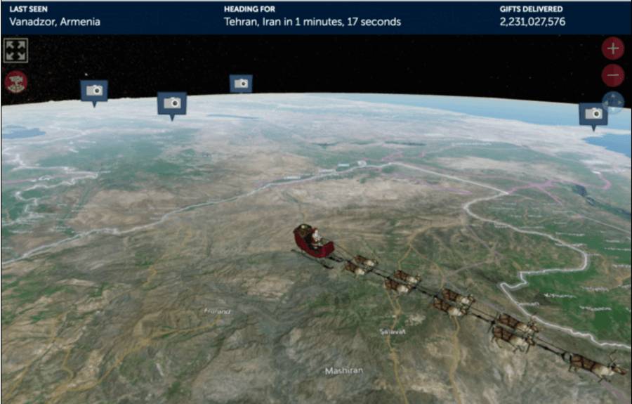 Published December 25, 2016 in NORAD Maps the Flight of Santa’s Sleigh | Full size is 1602 × 1024 pixels