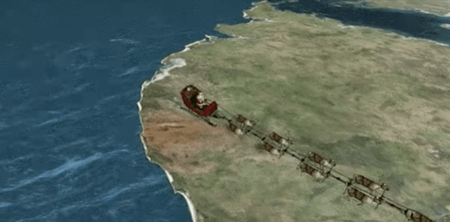 Published December 29, 2016 in NORAD Maps the Flight of Santa’s Sleigh | Full size is 1118 × 554 pixels