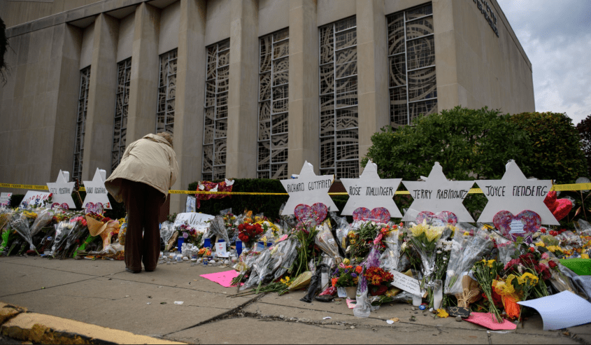 Memorial outside the Tree of Life synagogue in Pittsburgh, where 11 people were killed. Jeff Swensen/Getty Images