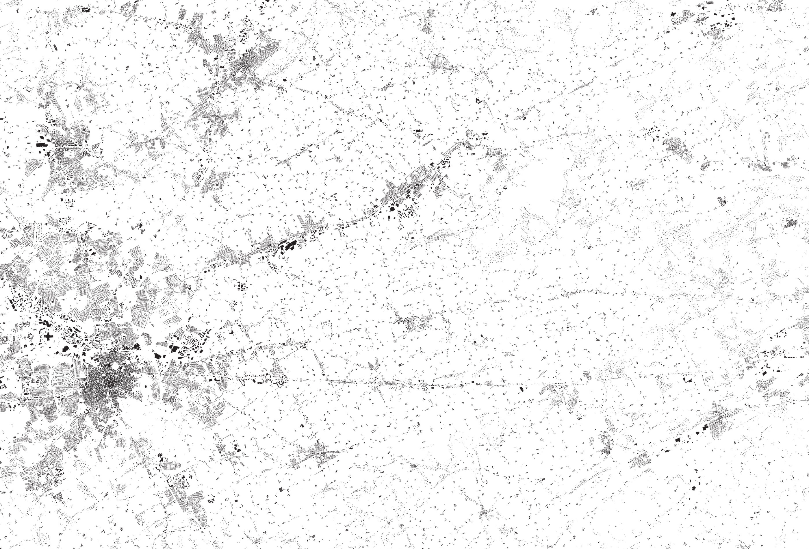 For despite the interest and levels of spatial recognition that readers are provoked to explore in the interactive map and its more local, but more legible print counterparts, which expand the detail of the national map, the lack of any points of orientation are oddly devoid of tips or clues for reading space, or the arrangement of a built space, or of how one navigates within it.  If the engineers who trained computers to read satellite imagery for evidence of individual houses invites viewers to examine the patterns of housing at multiple levels–a site to look at the architectural ordering of space machine-read from satellite observations, rather than mimicking travel through space, the patterns offer an eery recognition of place and space, unlike we’ve ever seen it before in a map, stripped of natural markers or much textual apparatus, strangely static in its rendering of built space, oddly ethereal in its absence of color or natural forms, or even what we might call experiential grounding over this flattened footprint of every building, disorientingly stripped of their actual height.