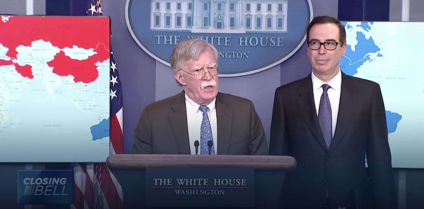 The new global imaginary that Bolton promoted as he stood beside U.S. Treasury Secretary Steven Mnuchin painted a global schism as the consequence of Maduro’s declaration of his victory in a second term as President, as a violation of that nation’s constitution–and as standing in violation of the Venezuela’s constitutional elections–but was as much a response to the defense of a restatement of American economic sovereignty in the Western hemisphere, a phrase going back to the turn of the last century, if not the Monroe Doctrine, but which gained new currency in the Cold War as issuing from the Dept. of State, and as a question of national security rather foreign affairs, by tactically magnifying the geostrategic role of the Venezuelan election, rather than offering evidence of a constitutional argument about sovereign legitimacy. The question of sovereignty seemed intentionally blurred, as the Secretary of the U.S. Treasury took questions about sanctions against a foreign state-owned oil company, currently OPEC chair, whose assets were being frozen to promote democratic legitimacy, but in fact to strengthen America’s hemispheric dominance.