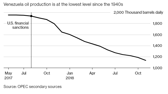 The sanctions on oil not only puts huge pressures on Venezuela’s economy, which is based on oil extraction, but beyond confronting the socialist Maduro with an ultimatum but comes Guaidó seeks to wrest control of Citgo before a payment linked to bonds maturing in 2020 comes due in April, which not only stands to freeze all of PDVSA’s assets in the United States ($7 billion “plus over $11 billion in lost export proceeds”); defaulting on payments would allow creditors of the petroleum group (including Americans?) to lay claims on Citgo’s assets in the United States, if not the oil reserves that the state company extracts from the Orinoco Basin, and allow the major players who buy from Venezuela’s crude–including Chevron, Valero Energy, and, among those operating in Venezuela, Haliburton and Schlumberger NV.