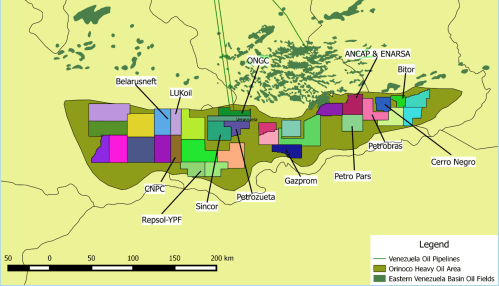 –located in the Eastern Venezuela Basin in the Orinoco Belt, surveyed as recently as 2010 by USGS as the Venezuelan government of Maduro’s predecessor Hugo Chávez took bids from Chevron and others to help finance exploration projects in the Orinoco Belt, seat of the world’s largest reserves, in a basin extending quite far offshore, in quite dense jungle.