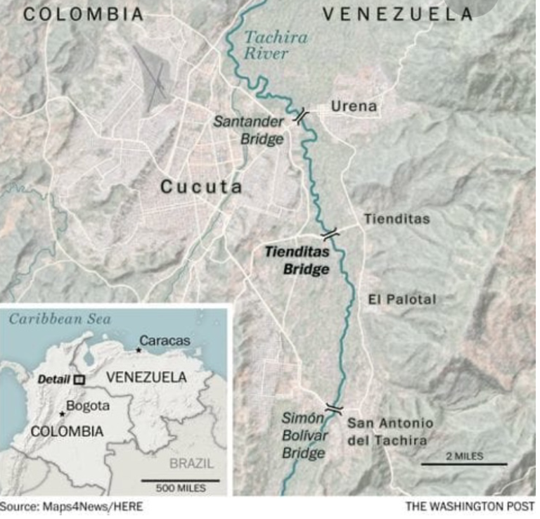 It is hard to describe the site where four bridges link Venezuela and Colombia as a clear frontier. The site was long rich with border zone illicit trafficking, including drugs and gasoline, guerilla groups, and paramilitary organizations. The current broad crisis of displaced and broad economic needs of Venezuelans who have crossed the bridges–often at a number of 30,000 a day–has displaced many who now reside in Colombia–outside the “boundaries” of Venezuela–suffering from similar needs of food, medicine, and work, as well as shelter to those remaining in Venezuela; settlements have created a broad regional human tragedy only partly reflecting ideology–those in Venezuela might list medicine and food as greater needs, but the need for humanitarian aid is hardly confined to within the border.