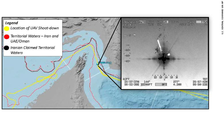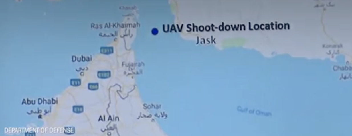 Or, as the U.S. Military’s Central Command tried to assert with its own parallel graphic of where the drone was downed, showed the apparent intensity with which Iran was able to pursue the dominance in a theater of oil transport vital to the global energy economy, and to the global economy that was attached to it, signaling a real Achilles heel in the continued image of American global invulnerability. which the United zStastes was determined to map as occurring outside Iranian sovereignty as an attack on American property and super-costly military hardware–starting a war of maps on the heels of a renewal to past Tanker Wars, both possibly poised to escalate into actual military bombardment.