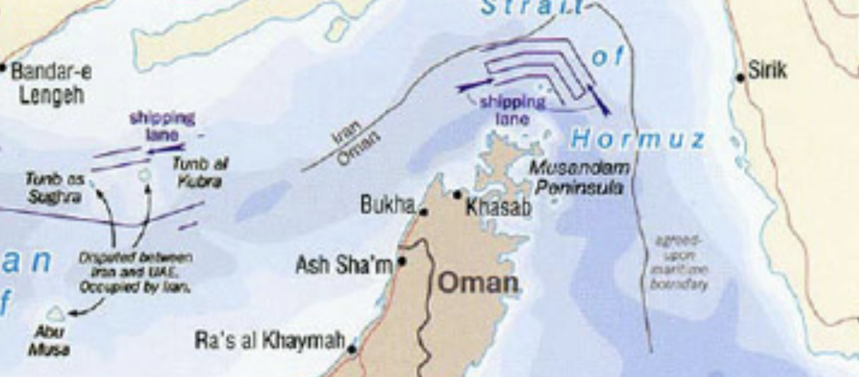 Coming on the heels of Iranian threats to shut the Strait of Hormuz to all traffic, as Iranian speedboats patrolled the waters, as if tempting to assert their control over the narrow passage-way out of belief that “if our oil does not go through the Strait, other countries’ will certainly not cross the Strait,” the jockeying for power over the transit of oil in international waters set up a conflict between where national sovereign interests began and ended, and what power the United States regained on a global geopolitical stage, even as the United States openly asserted the upper hand of global surveillance over what is one of the narrowest maritime site of petroleum transit in the world wildly out of proportion to the millions of barrels that cross the narrow strait daily, a transit that wildly dwarfs the petroleum carried to global markets by other maritime routes–despite the quite narrow nature of its passage, and the even narrower space of international waters by which oil tankers navigate the Strait.