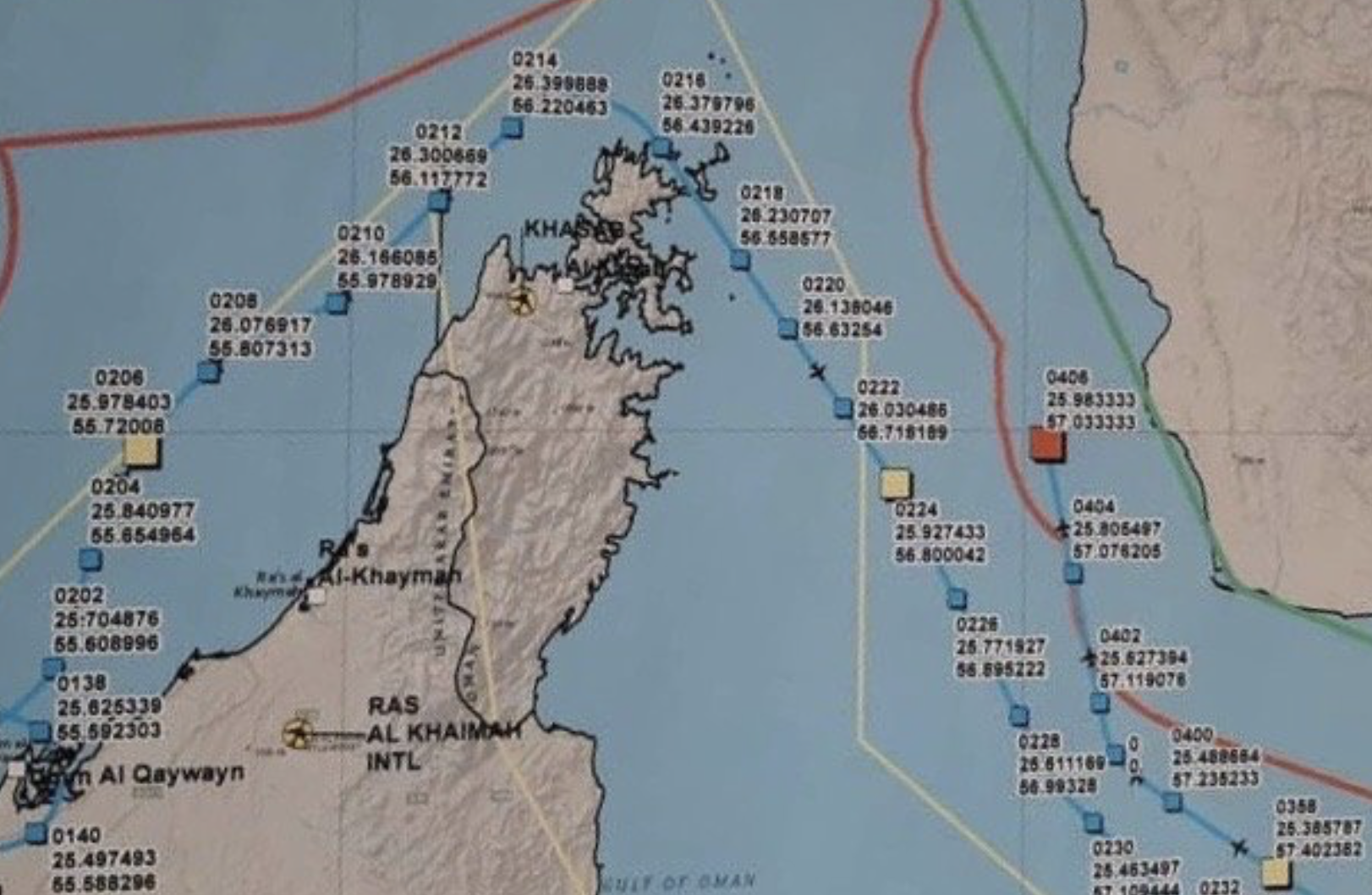 It hardly helps that tankers had so recently been attacked, of course, in the very same Strait, as they travelled in what one suspects were international waters. The clustering of oil tankers dotting the Strait from around Dubai, indeed, made it hard to determine where one wanted to police the safety of other tankers, and how that ensuring of safety could be conducted while remaining strictly outside the “national waters” of Iran–given the odd remove of “territory” from land, echoed in the quite dissonance between the misleading inset map of “Iran” in relation to “Saudi Arabia,” and the location of what Iran calls its airspace, defined in this case by proximity to Kooh Mobarak, whose location has probably never assumed such telling salience in an event of truly international consequence.