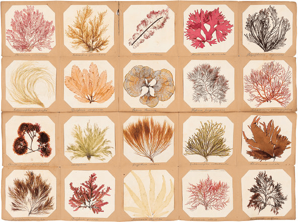 So much is evident in the glorious album of species of seaweeds that sorts some twenty different seaweeds collected in the Channel Islands attests, in a veritable compendium of life-forms and exemplary records of the evolutionary record, bordering on the commodification of the natural and on the appreciation of the handiwork of created forms–often associated with ornament, decoration, and artifice, as much as its vital role in marine population was preserved. The rage of pressing seaweed to illustrate its aesthetic properties, was to an extent emblematized by the Victorian interest in preserving seaweed samples in samplers, removed from their ecosystems, as if preserving a legacy of Darwin’s attention to the speciation of marine environments uprooted from the environments themselves, that still to some extent is a popular legacy of the romanticization of the coast as a site for seaweed observation.