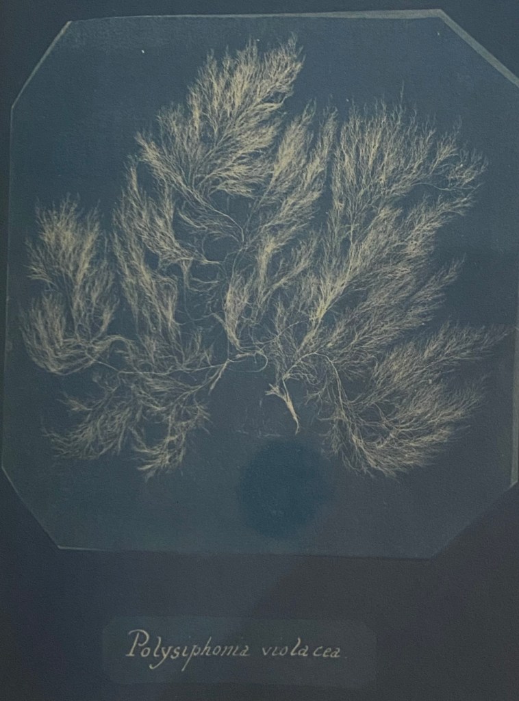 Analogous to collections of antiquities, the photograms of seaweed catalogued by scientific name was an early effort of “blueprinting” that promised to allow women to integrate themselves in a respectable scientific enterprise through botany–an area more open to women practitioners, which had lead her to collect and preserve plants from the 1830s, perhaps under the influence of her father’s etymological expertise: the new medium of cyanotype photography allowed her to catalogue the feathery varieties of weed by a scientific manner with which she was familiar as the illustrator of Lamarck’s work on seashells. Was the project of documenting seaweed forms not only more challenging to render in pencil or engraving, but lent itself to a more fitting record of their complexity?