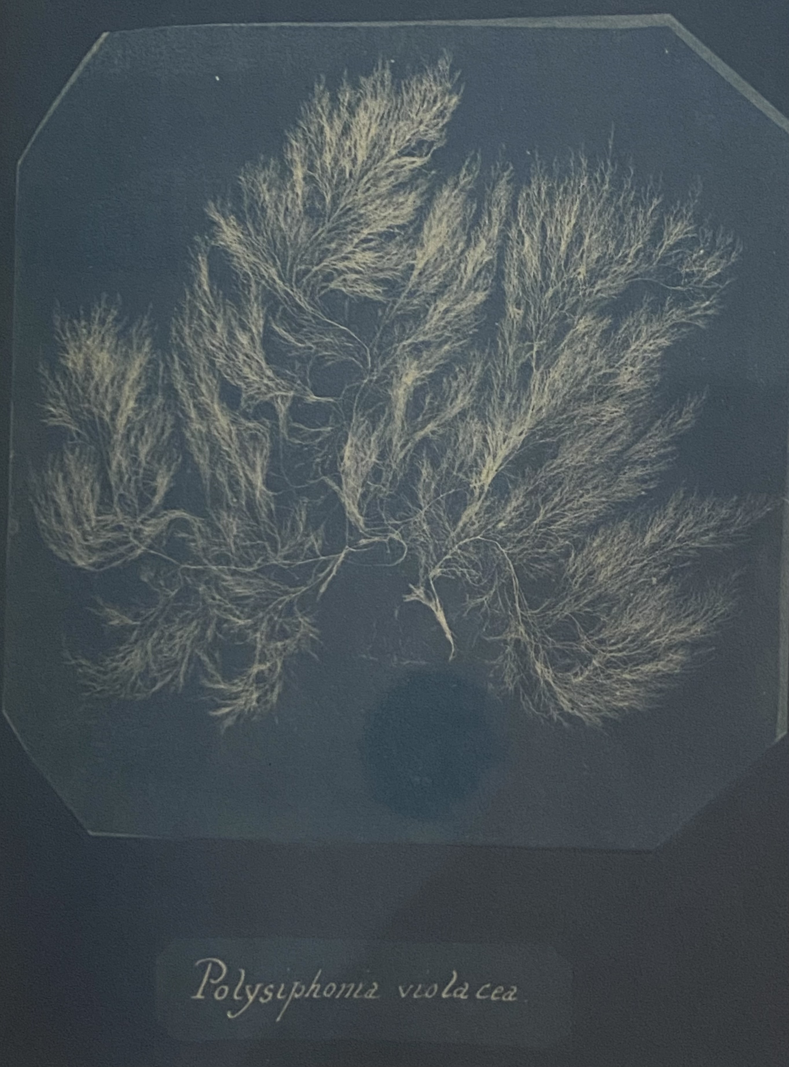The opportunities of observation within these carefully assembled seaweed collections, however, which provided opportunity to study the infinite variety of nature, evident in the rage for collections of pressed seaweeds–as if in a form of postage stamp collecting, often performed by women and children, in an extension of the pressing of flowers or leaves or ferns into the edges of the underwater world, leading marine macroaglae to be preserved in Port Arthur, Australia, the Cape of Good Hope, and Ireland, as the enterprise of cataloguing their variety for naturalists or phycologists from Ferdinand von Mueller toWilliam Henry Harvey, or Joseph Hooker, of Kew and Carl Agardh of Sweden led to the assembly of large collections of the sea plants that produced not by flowers, but spores, in dignified scrapbooks like Anna Atkins’ s “Photographs of British Algae,” some of the very earliest examples of one-color photographic processes that used marine-like cyan hues of vivid colors we associate with sun-prints to create exquisitely detailed mid-century “prints” of algae as scientific records in elegant cyanotypes of almost etherial effect. Atkins, who worked on sunprints before the invention of the photographic cameras, pioneered the sun-print cyanotype with nearly four hundred prints, printing sets of impressions from 1843-50 of twelve volumes that catalogued the algae on British shores, in the first effort to use photographic images for scientific ends by the cyanotype process invented in 1842: did the effect of illustrating a deep blue sea on paper lend itself to the practice of photograms of underwater seaweed?