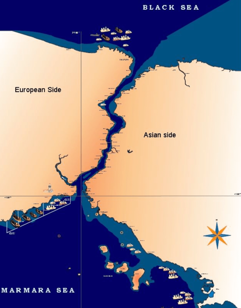 The increasingly shallow waters of the same straits continue to afford perilous passage for tankers. Pollution levels haven’t ceased traffic in the narrowest channel of international navigation, or stopped the long historical use for swimming, fishing, and sailing, even as construction projects on each site of the narrow Strait polluted its blue waters.