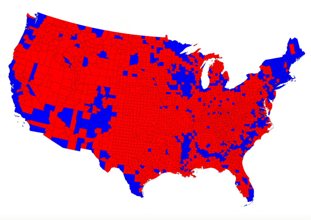 The fraught question of celebrating the Genoese navigator became a hot-button topic for Donald Trump to rally red state voters–“to me, it will always be Columbus Day!”–and to serve as clickbait as part of the new, perpetually churning culture wars. In an October state meeting with Italian President Sergio Mattarella, Trump was pleased to note that while “some people don’t like” the continued commemoration of Columbus’ transatlantic voyage, “I do”, as if that should be sufficient for the nation. Prime MinisterMattarella’s state visit became an occasion to espouse public disdain for the renaming of the national holiday as Indigenous Peoples Day, if not Native Americans Day, in over 130 cities across 34 states. For President Trump, doing so seemed designed not to impress Mattarella, but define a wedge in a deeper cultural urban-rural divide– a yawning divide of economic opportunities, the knowledge economy, and the shifting horizons of economic expectations, more than political belief. The nature of this poorly mapped landscape, the thin substrate of uneven economies and cultural disjunctions and divides, that passes as a political in a datamap of the district-by-district voting preferences that rips a red continuity all but from its bordering blue frame.