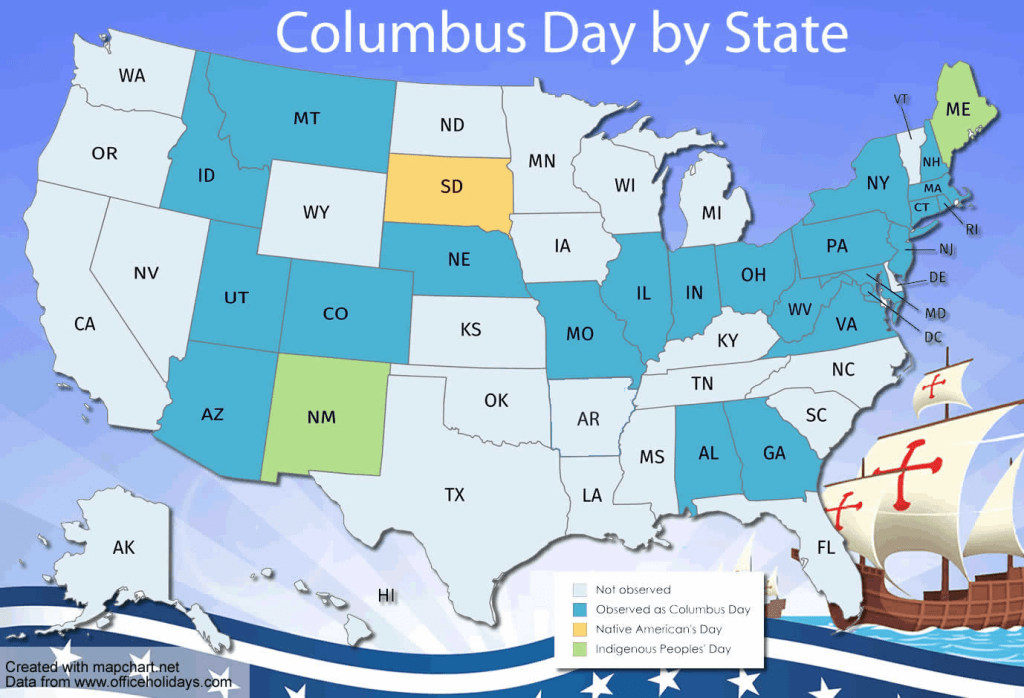 But rule over a continent is rich in the modern imagination, and perhaps offers a new optic for Columbus Day. When Donald Trump, as sitting U.S. President, outright celebrated national commemoration of “the legendary achievements of an intrepid Italian explorer,” defending the federal holiday against the proposed renaming of the holiday as Indigenous People’s Day, he seemed to relish the prospect of uniting the nation around its celebration. But in citing the “daring spirit that built our great civilization” as a foundational myth celebrated from Columbus Circle in Manhattan to Columbus, Ohio, he exploited a fault line running through the nation, in fact quite divided, and was promoting the further division of the nation. The divisions are sharp among the eleven states where Indigenous People’s Day is recognized, and the “defense” of observing, as if to defend native land: by no small coincidence, the celebration of Columbus Day mirrors the “heartland” Trump professes such ties–if it is also contested in the very red states in the map that Trump may be addressing, and seems pretty clear to be lying prominently in his head.