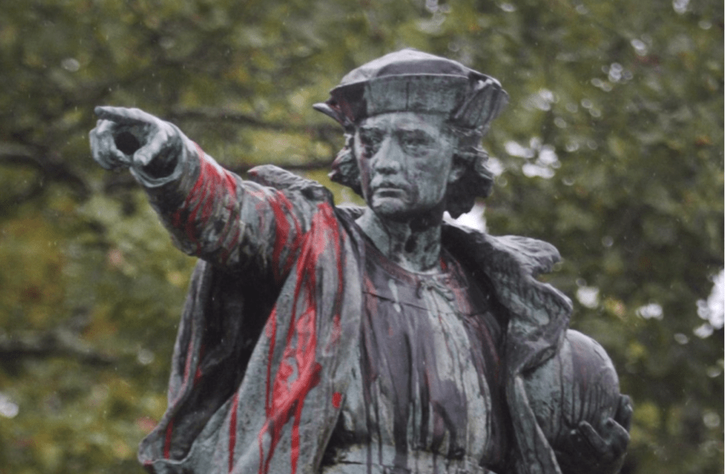 The image of an “attack” on Columbus Day Commemorations has become a bit of red meat for the white electorate, fearful of a changing national map–and the growing cities and schools opting to pass or consider resolutions to question its observance, questioning bearing witness to the seizure of lands and their violent conquest. as cities across thirty-four states observe Indigenous People’s Day, a concept introduced in Berkeley, CA, on the quadricentennary of 1992.