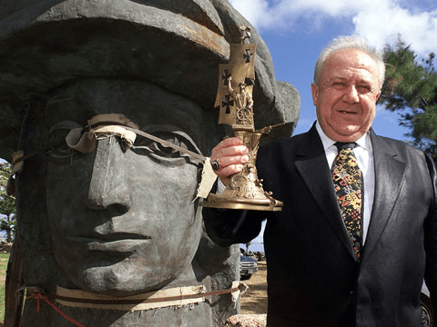The unbuilt monument was perhaps best known by the inflated version of Tsereteli’s monumental head of Columbus, an anti-monument inflated as a protest in Plaza de Colón in San Juan, Puerto Rico, behind a statue of Cristóbal Colón, constructed on occasion of the fourth centenary of 1892, showing holding a globe and a flag. The arrival of a new monument Columbus of Tseretli’s design was slated to arrive in Cataño, Puerto Rico, precipitating a local crisis in government. The arrival in Puerto Rico occurred after seven cities in the United States decided against accepting the “gift” of questionable political impact and aesthetic appeal.