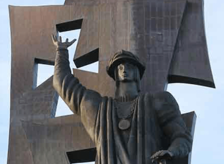 Trump’s acceptance of the statue was an indulgence of seeing himeself as a figure of state–or figure of para-state–who trafficked in a symbol of authoritarianism apt for a triumphant celebration. Never mind that the figure of Columbus was increasingly interpreted and understood in those years as a colonizer, and agent of conversion; in Trump fashion, he pushed back by seeming to highlight those very themes in the planned monument, casting the conversion of natives by royal mandate as a part of national history, an indulgence of mythistory he presented as “major” in its restatement of an image in the face of historical debate. The statue whose appearance he had effectively acted as accepting from Tsereteli and his oligarch benefactors accentuated precisely those features with a grotesque grandiosity. Was it the basis for how as U.S. President Trump proclaimed Columbus Day a celebration of the navigator making landfall in ways that “set the stage for our great nation”? Trump’s familiar First World view of European settlement was clearly embodied or reinforced by a monument combining crosses, royal insignia and sovereign gaze, a if to stare down indigenous inhabitants in blank but imperious ways.