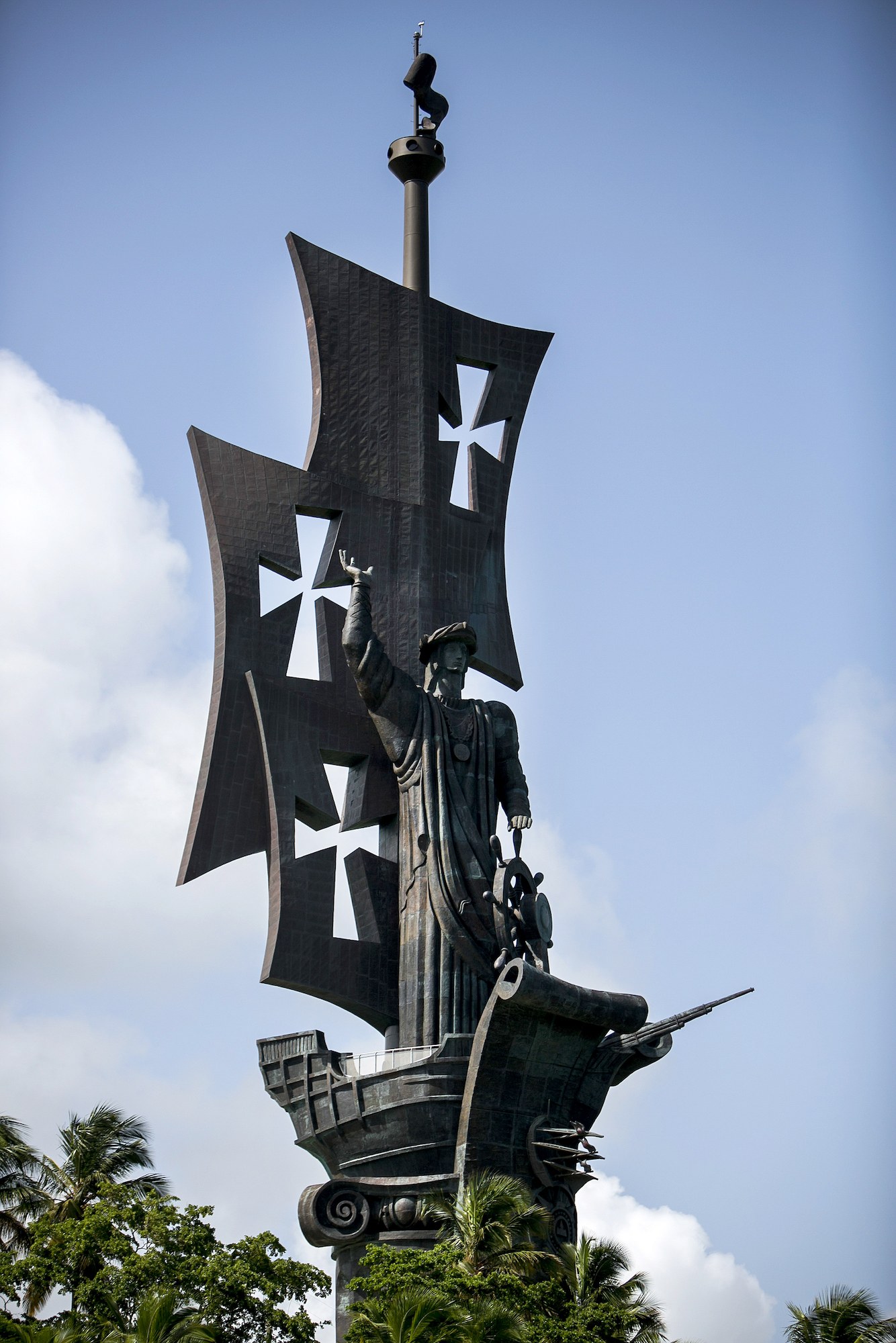 Trump’s actual interest in the statue whose creator was long promoted by two Russian oligarchs who served time for fraud , is unclear. The statue had been promoted as a testimony to post-Soviet US-Russian friendship. But it was probably based on self-interest–more than international ties. Trump’s eyes were drawn to monumental statuary on the Hudson to generate media buzz in the West Side Yards project that would later be developed as Riverside South; he got that even a somewhat cubist rendering of the fifteenth century navigator would make a splash on the Hudson River; it’s unclear if the grim-faced Columbus would either face the property and Manhattan island or look out to see, echoing the Statue of Liberty further south in New York Harbor, which it was slightly taller than. Before its pieces were reassembled in Puerto Rico, the statue faced proposals of relocation–after New York declined the kitschy monument, in 1997, when its Board of Commissioners were not feeling inclined to The Donald–and rejections followed from Baltimore, Miami Beach, Ft. Lauderdale, and Columbus, OH, until the Great Navigator arrived in a fishing village on the edges of American territory. The statue still dominates the viewer from an incredible height, but isolated in its surrounding landscape, and less monumental than it was imagined.