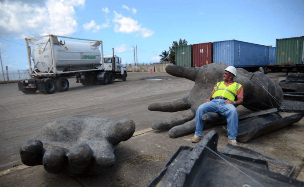 36. Trump has been utterly distanced over time from the proposed Columbus statuary, which must have always seemed a bit of a boondoggle. And he showed little gratitude or responsibility to Puerto Rico for paying costs to ship the tonnage of ugly sculpture that seems built to his precisions of overshadowing New York Harbor. We can remember how devastated Puerto Rico was by Hurricane wind of Hurricane Dorian, whose progress Trump watched only to refused to the San Juan government he readily labeled where he targeted San Juan as the seat of “the most corrupt places on earth,” presumably second only to Ukraine. He only exaggeratedly emphasized the risks to the United States as the Category 1 hurricane was approaching Category 2, casting the deadly storm as a national threat to the United States that he hoped Puerto Rico built its buildings better to endure. (The Columbus statuary he once sought to bring to New York City endured the winds, despite its height, making it even more an object of scorn.)