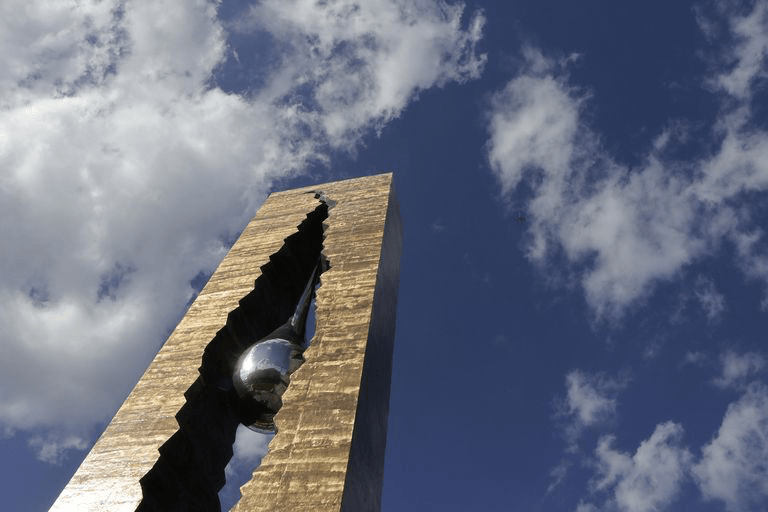 –the nature of non-governmental monuments are not readily traceable, tied to vague sponsors and groups of individuals assembled for the occasion. When Tsereteli presented the 9/11 statuary including a forty-foot stainless steel teardrop in Bayonne, NJ, the “gift was of the Russian People,” but on whose behalf it was given by President Vladimir Putin as a personal gift, as much as a gift of state. And things get complicated: Tsereteli was reported to have spent $12 million to complete the project for Bayonne Harbor; the consortium of businessmen who wanted to place The Discovery of the New World in Miami Beach collected private monies to do so; the sculptor himself “gifted” a smaller statue of Columbus to the Spanish city of Seville, but as it contained much soft copper, on which no export taxes were paid; his massively grotesque Good Defeats Evil in the United Nations Plaza in New York City modeled on St. George defeating the dragon, presented to commemorate the end oft the Cold War, echoes his gleaming monument of St. George in Tbilisi, allegedly built from ex-Soviet and American ballistic missiles; the 2005 gift of a Holocaust statue of emaciated prisoners to Jerusalem was from President Putin to Jerusalem.