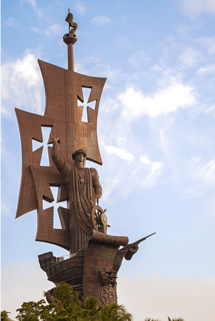 While Tsereteli assets that the above statue of Peter the Great installed in 1997 on the River Moskva to commemorate the three hundredth anniversary of the Russian navy’s founding was in fact created only for the site in Moscow, the revelations of the close ties of Moscow’s mayor, Yuri Luzhkov to the commission raise questions about underwater financial transactions that led Trump to announce a gift from the city of Moscow of a monumental statue of the fifteenth-century Genoese navigator, long celebrated in an annual parade in New York City, and the appearance of the strikingly similar monumental statuary of Peter the Great, who on multiple expeditions south to recapture Crimea by his navy, in the 1690s, given the difficulties of expeditions across the steppes.