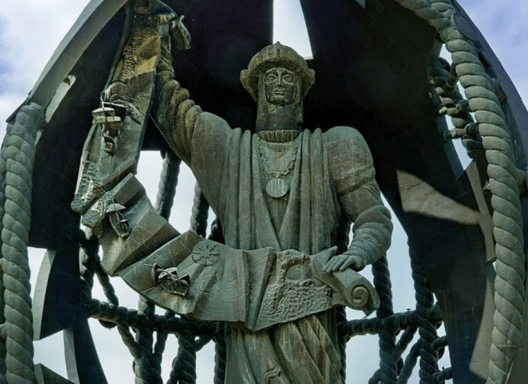 If all maps are claims of an ability to take possession or claim of space, the statue was a powerful speech act. If unuttered, and never built, the speech act that echoed Columbus’ historical worlds at centuries remove echoed the intermediary role long celebrated as if the mariner were a hardly disembodied if spatially removed agent of the Spanish king, an emissary to the new world, a former wool-carder now dignified as a delegate of royal authority in a New World. The terrain is now known, but would have inflated Trump Properties as more than a brand, but a global property, a player on a global stage with properties far outside New York, and tied to new Trump Towers to be built in Moscow, as the statue that Russian leaders had long sought to present to American Presidents in the previous years as an image of sovereign authority they felt was molded to American global claims in a post-Cold War world was recycled Did it contain spying devises, or serve to smuggle precious metals into the United States, as had a statue, smaller, that was gifted to Spain several years earlier, on the quincentenary of the Colombian voyage, when it was built in Seville, unfurling an actual map of discovery, as if to show his transatlantic route to monarchs? The statue, also the work of Zurab Tstereteli, foregrounded the notion of transit across the oceans more centrally.