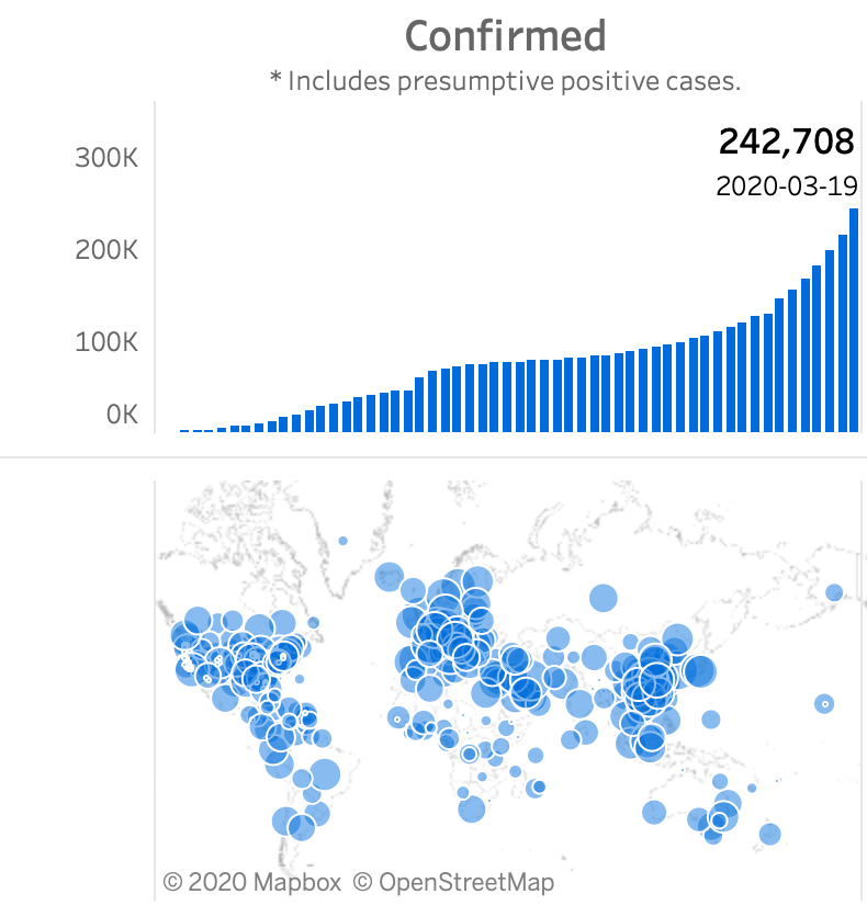 Yet the pace of the identification of confirmed cases over time seemed most crucial in many ways, as, even if we have no sense of incubation periods, choropleths provide poor senses of grasping the spread of the disease in ways that might help grasp the importance of social distancing, rather than shoveling sheer data at us that reflects the morass in which governments find themselves and project it onto the general public in quite disorienting ways.