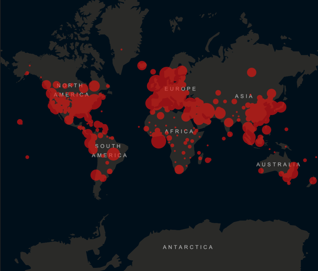Was this the voice of death, or the death of Trump, or the final end of a national health policy, from the top down? Only the distortions of the Mercator Projection allowed us to imagine areas of the world that were free from confirmed COVID-19 cases by late March, as the confirmed cases had in fact spread globally, and multiple popup ads reminded us to reconsider the immediate reaction of taking our IRA portfolios out of the stock market.