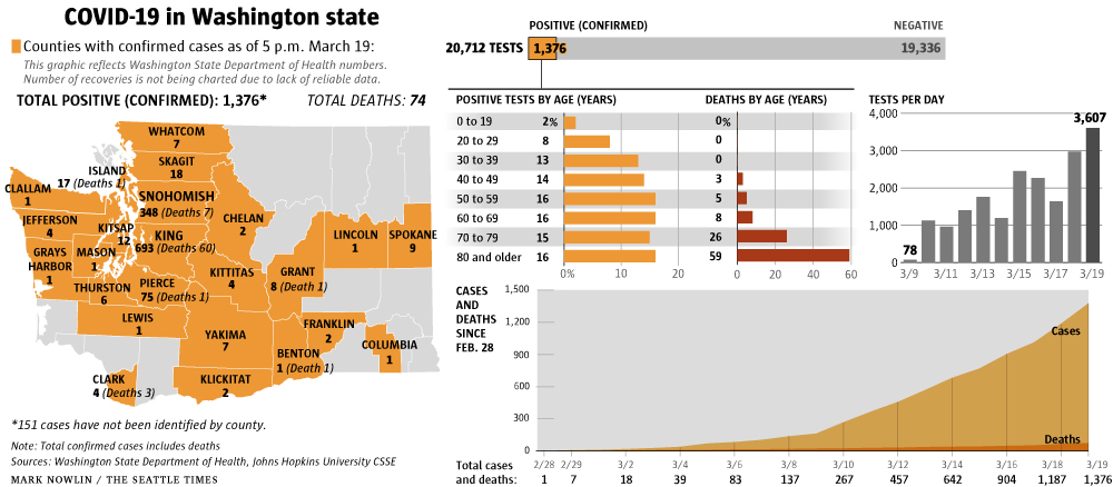 A continued absence of national data–and reliance on state databases–emphasized the gap between national oversight of a much reduced CDC agency, and a lack of national oversight that foundations, corporations, and other entities tired to remedy with desperation by stepping into the breach. If the first cases of COVID-19 were evident in Seattle in mid-February, sending alarms through contagious diseases laboratories, with Microsoft employees reporting infection by the illness on March 4, and two other cases at Facebook, Microsoft instructed employees to work from home, setting a precedent for Shelter in Place acts. As the spread of the disease by late March had blossomed into a pandemic, by March 25 local radio stations announced they would no longer take time to broadcast Trump’s daily address, due to misleading information unable to be verified in real time, accentuating the region’s split from the Presidency, and the deepening levesl of public distrust.