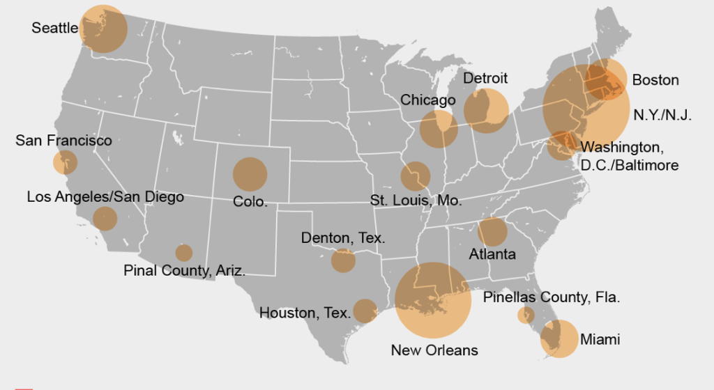 And by March 19, COVID-19 cases were growing at a record of 500 a day, as cars lined up over two miles to be tested in the rare drive-thru testing center, sending many regional health professionals into panic mode, but we looked to maps for a sense of relief, in our fragmented United States, believing that hot spots lay somewhere else, at a safe remove, even as hospitals entered periods of stressful overloads, shortages of needed masks and preventive equipment, and health care workers faced increased duress. If the number of such “hot-spots” had shifted over much of the large urban areas of the east, by late March, the discourse of uncovering further “hot-spots” continued as a debate of data analytics, balancing counts based on total confirmed cases of infection with the uncovering of “hidden hot-spots” in smaller population centers, often obscured by the greater numbers found in larger population centers.