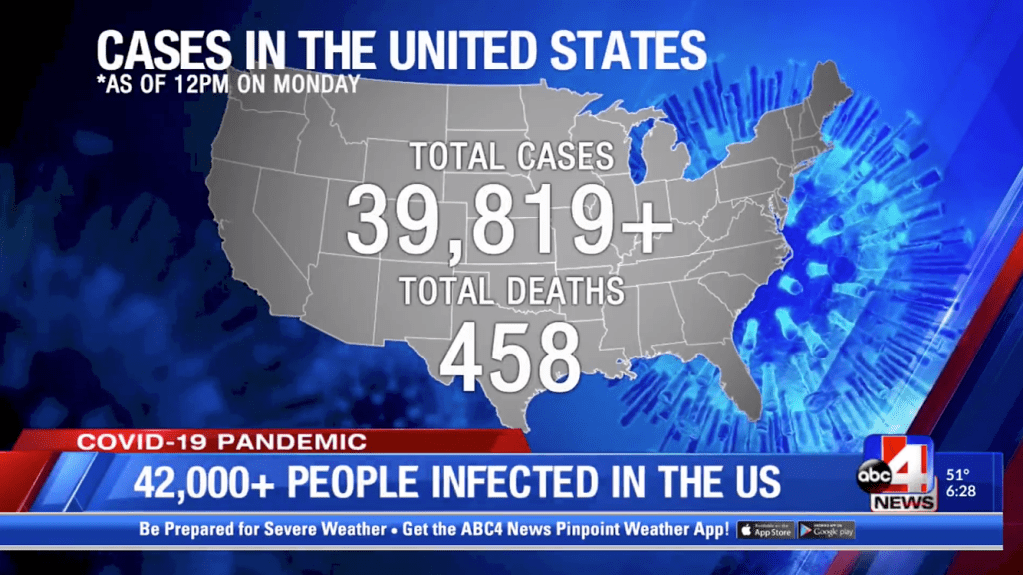As we await the unfolding of infection maps in the two week incubation period for symptoms to develop for SARS-CoV-2, a drama that starts on the surface proteins of the novel coronavirus, extending to symptoms whose spread we seem condemned to watch expand from a position of inadequate preparation, low testing availability, and often inadequate monitoring for critical signs that would lead to a better understanding for limiting risk of infections. (Initial studies put the incubation period at anything from 2.1 to 11 days, with a median of 5.1.). We were warned in the newsmedia in future simulations that forecast as almost inevitable a mortality rate of almost a million and a half by late April, we looked to an uncertain future as a nation–with April 1 as the critical point when the coastal cities would turn bright red in a model of the lowest surveillance, monitoring, and social distancing; in a model of greater monitoring, infections grew red by April 30 only in coastal cities as New York, San Francisco, Miami and Los Angeles.