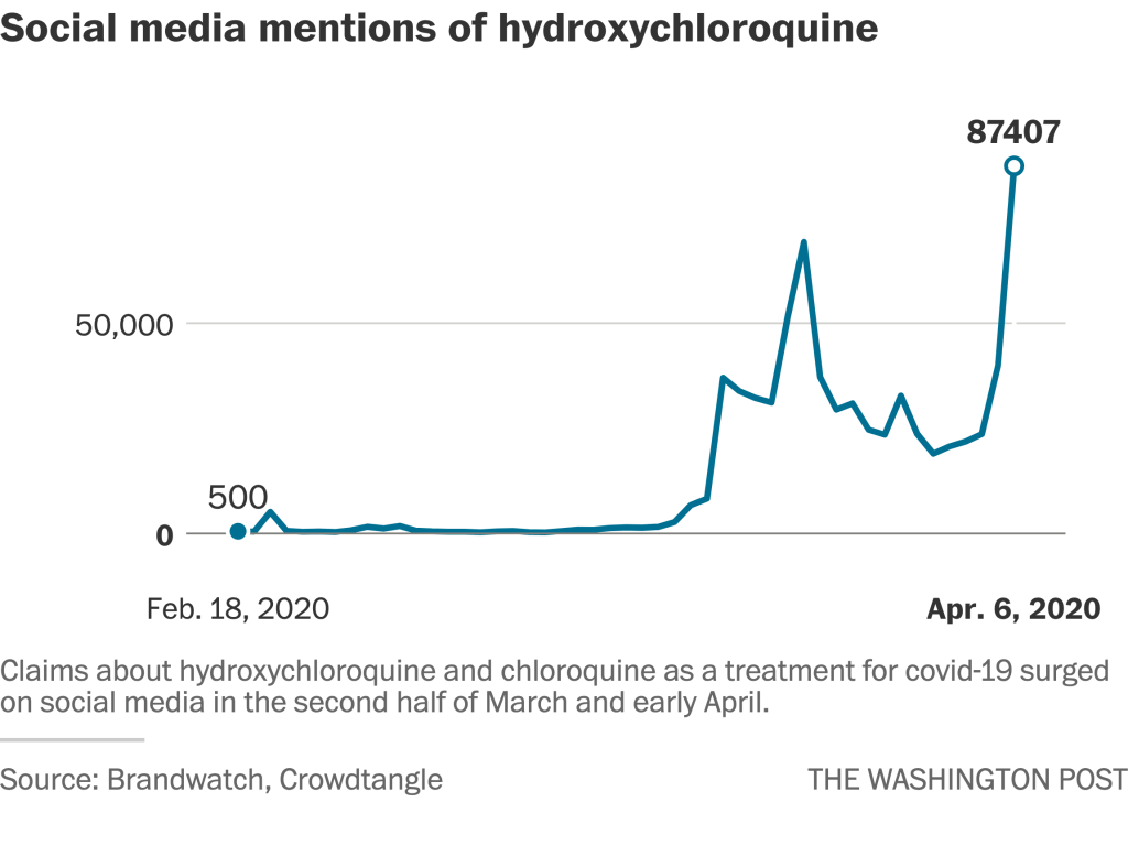 The dominant White House interpretation of data about the disease is a logic of the continued extraction of profits, not only of tax breaks and stimulus packages, but outright profitability from pharmaceuticals that have no clear relation to the virus (hydroxychloroquine . . . ); tests that prove to offer little useful accuracy in testing (the “great test” Trump promoted from Abbott Labs, ID NOW . . . ); limits of the reliability of serological tests; and the involvement of members of the “first family” in automated health advice that provides a poor, tragic, empty substitute for health care. Trump had promoted hydroxychloroquine on March 19 as a “game-changer,” echoing the words by which FOX’s Laura Ingraham endorsed the drug in an interview tie Gregory Rigano, a Long Island attorney who had been promoting the treatment in a much-retweeted GoogleDoc, broadcast March 16: the broadside designed with the appearance of scientific validity incorporated the theories of French virologist Didier Raoult–whose work had spurred a rise in internet rumors as to its efficacy, from late February to early March: Raoult’s findings gained currency through block-chain investors and Elon Musk, who valued the lack of clinical validation or trials, claiming hydroxychloroquine “efficient on SARS-CoV-2, and reported to be efficient in Chinese COV-19 patients.”