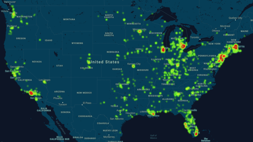 For the changing actual maps of national distribution of the illness as they evolve reveal an expanding growth of infection rates along the Mississippi, in Florida and the US South, as well as southern California, Chicago, and Detroit.